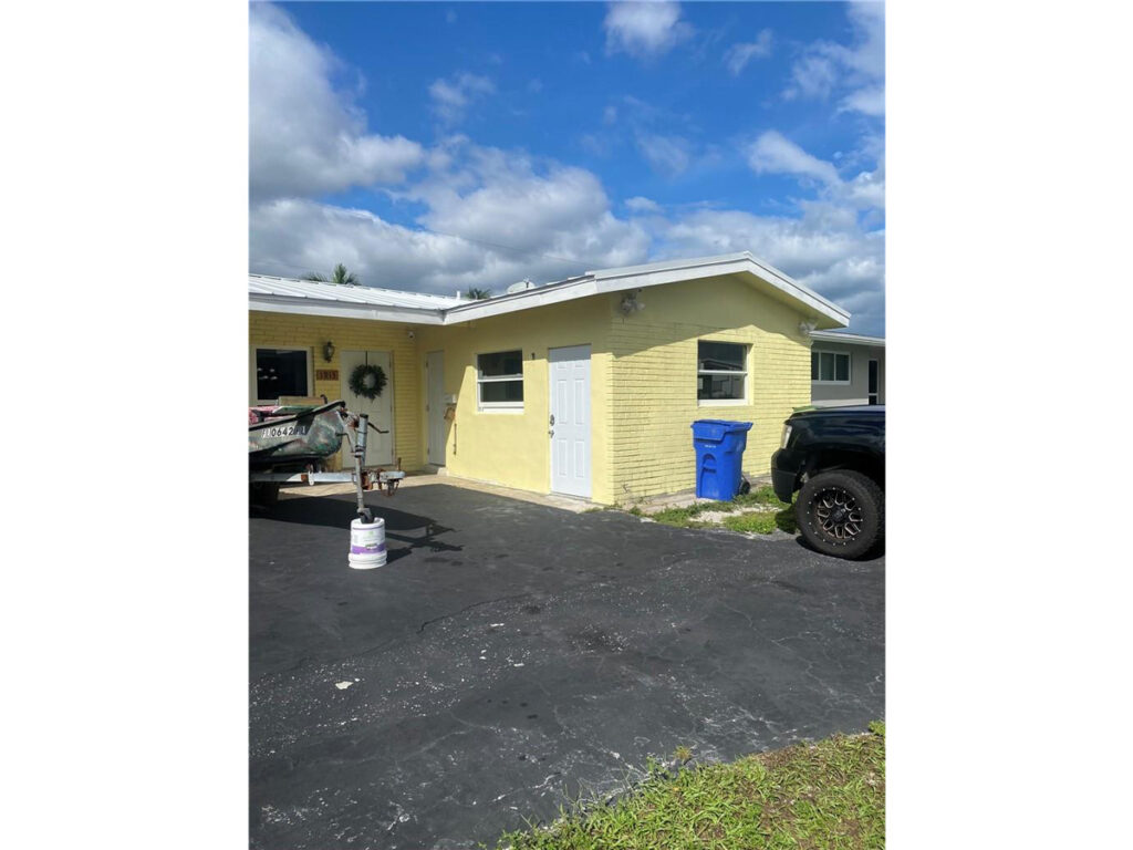 This property boasts a new roof and impact windows that are just under two years old. The East side is a 3/2 with a brand new A/C system. The Florida room is converted into a bedroom and also has a laundry room. The West side is a 2/2 with a 4 year old A/C system. The East carport is currently being converted into a studio apartment with all required permits. Located in Mary Knoll/Imperial Point and only a mile from the beach. One tenant has been there for 18 years hence the low rent. All units have separate water and electric meters.